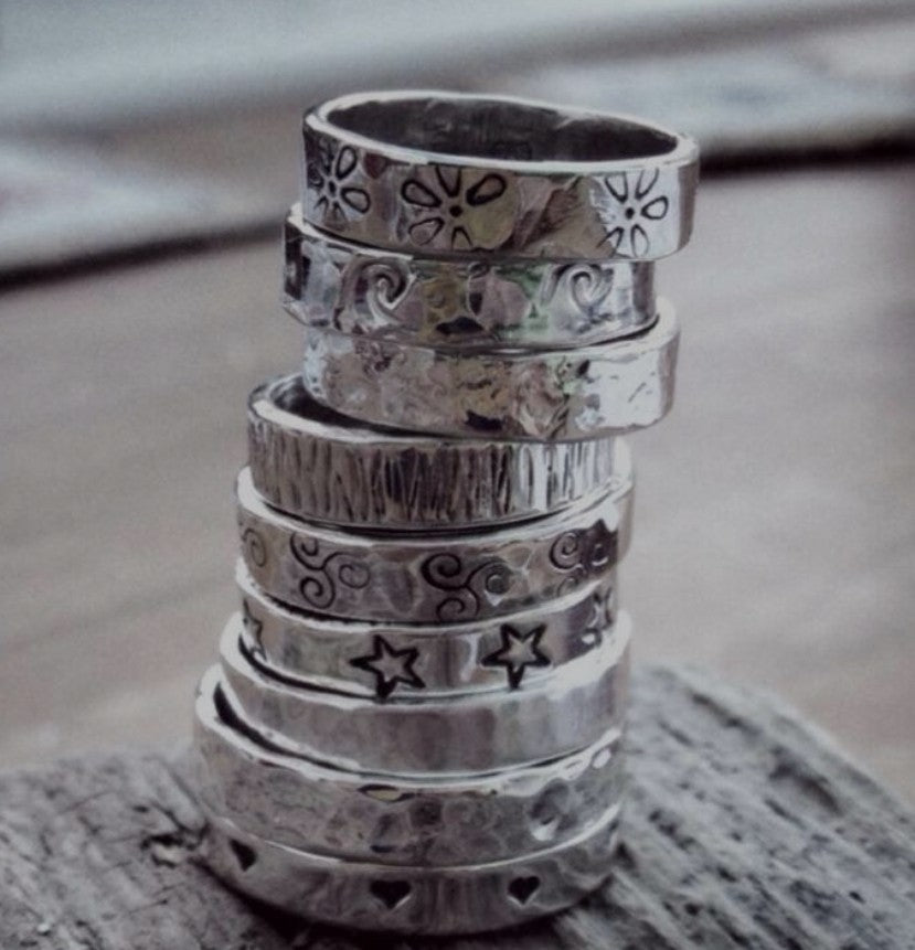 Making your own ring… Do you want to texture it? Stamp a design into it? Run it through the rolling mill? Or maybe personalise it with some lettering… it’s up to you to decide! You will learn how to cut to size, get the ring prepped for soldering, clean and polish it to the perfect finish... and voila…. a handmade ring to take home!!! Rings are made from 5mm wide sterling silver.